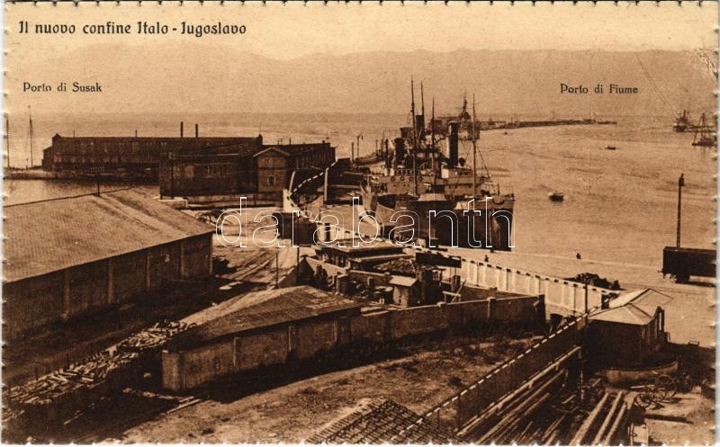 Fiume, Rijeka; Il nuovo confine Italo-Jugoslavo, Porto di Susak i Fiume / The new Italian-Yugoslav border, port, steamship