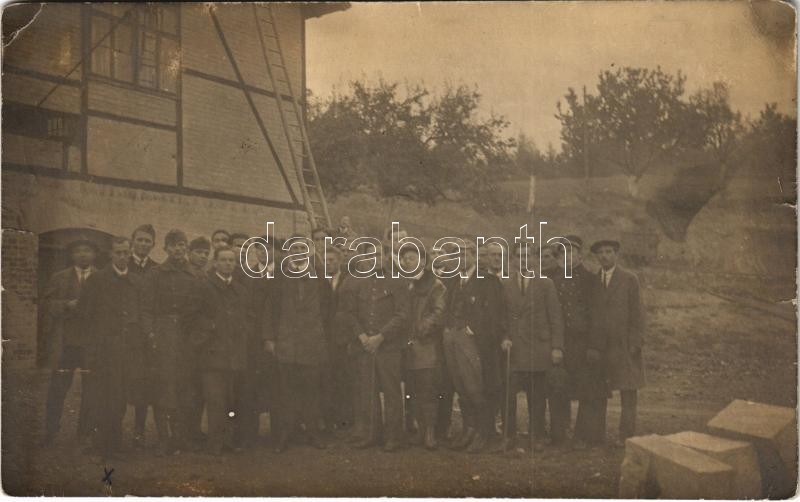 1923 Sopron, Brennbergbánya, leventék és diákok az Ilona akna felvonója előtt. photo (EK)