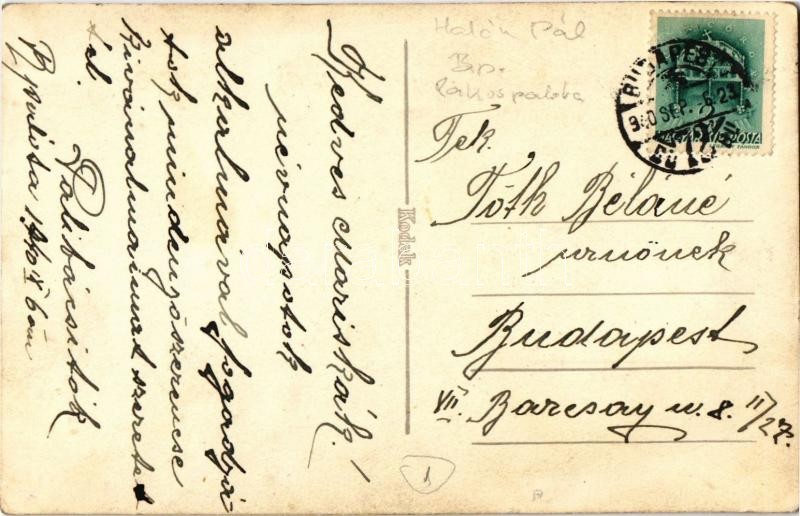 Description: 1940 Budapest XV. Rákospalota, Halász Pál borbély terme, úri és hölgy fodrász üzlete. Hátoldalon Halász Bál saját kezű levelével. Baksay utca és Rákos út sarok. photo (EB)