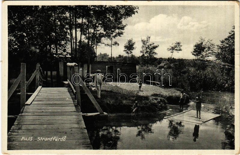 1940 Pilis, strandfürdő, fahíd. Fantusz Izidor kiadása (gyűrődés / crease)