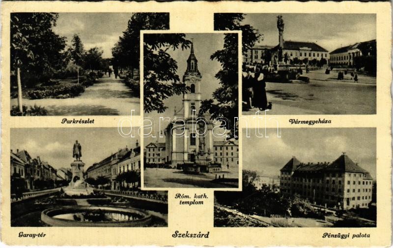 1941 Szekszárd, Park, Római katolikus templom, Vármegyeháza, Garay tér... https://www.darabanth.com/en/371-Online-auction/371.0/Postcards/Hungary~1500005/1941-Szekszard-Park-Romai-katolikus-templom-Varmegyehaza-Garay-ter-Penzugyi-palota-piac~II2166566