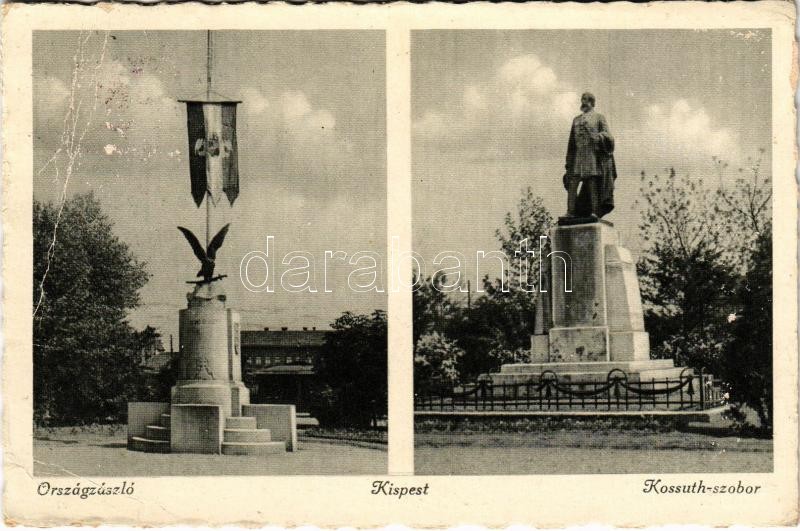 1944 Budapest XIX. Kispest, Országzászló, Kossuth Lajos szobor (EB)