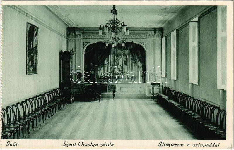Győr, Szent Orsolya zárda, díszterem a színpaddal, belső - képeslapfüz...