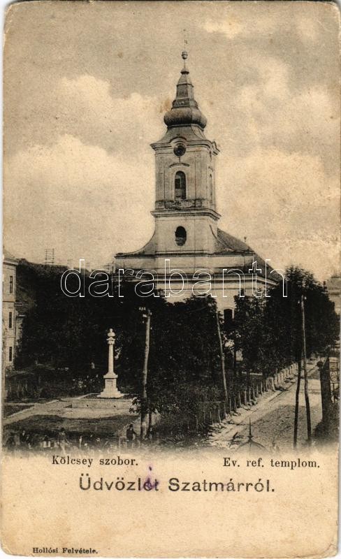 1914 Szatmárnémeti, Szatmár, Satu Mare; Kölcsey szobor, Református tem...