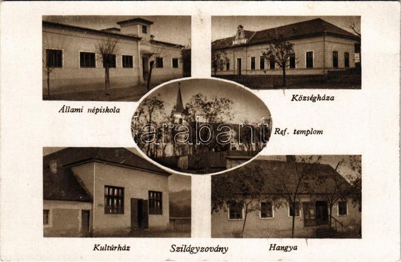 Szilágyzovány, Zauan; Állami népiskola, Községháza, Református templom, Kultúrház, Hangya üzlet / school, town hall, Calvinist church, Culture house, cooperative shop