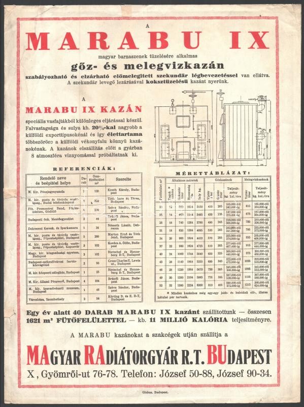 cca 1925 Marabu IX gőz- és melegvízkazán szórólap, Kun S. grafikájával...