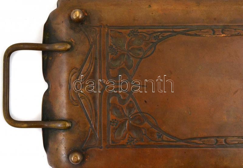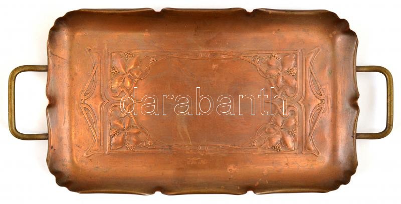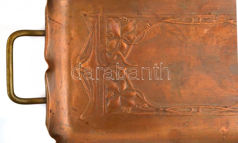 WMF szecessziós szőlőlugas mintás réz tálca, 38×18 cm