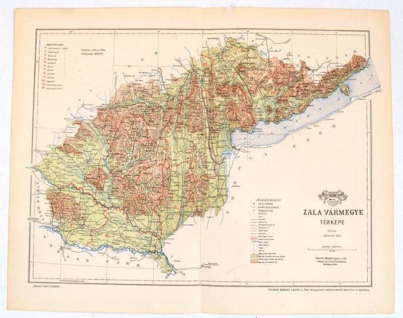 1893 Zala vármegye térképe, tervezte: Gönczy Pál, Posner Károly Lajos ... https://www.darabanth.com/en/372-Online-auction/372.0/Art-and-other-collectibles/Maps~28/1893-Zala-varmegye-terkepe-tervezte-Gonczy-Pal-Posner-Karoly-Lajos-es-Fia-terkepeszeti-~II2169318