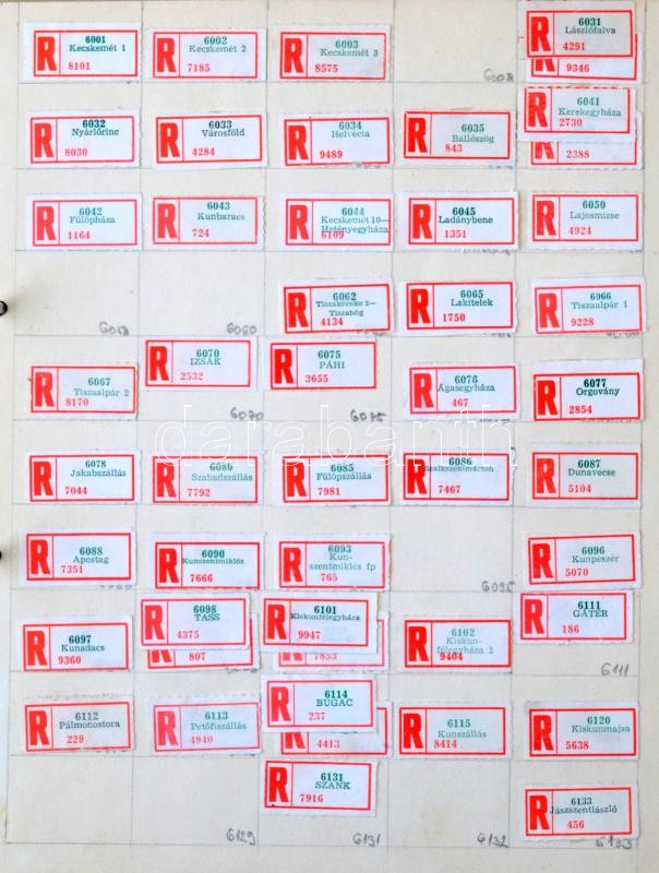 Kb 1800 db-os betűrendbe szedett magyar ragjegy gyűjtemény házi készítésű albumban, benne nagyon sok kistelepülés, érdekes eltérések,