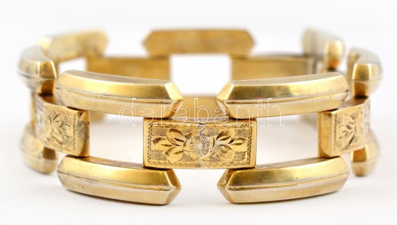 Aranyozott ezüst(Ag) virágmintás karkötő, jelzés nélkül, h: 18 cm, nettó: 26 g