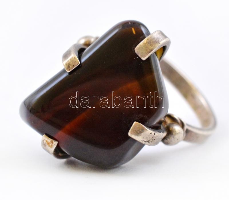 Ezüst(Ag) gyűrű, tigrisszem kővel, jelzett, méret: 52, bruttó: 6,9 g