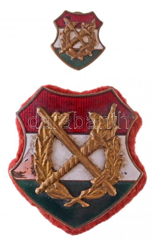 1948. "Magyar Szabadságharcos Szövetség" zománcozott fém jelvény textil és karton alapra varrva, miniatűr gomblyukjelvénnyel + viselői igazolvány (43x45mm, 18x19mm) T:2-,2 zománchiba