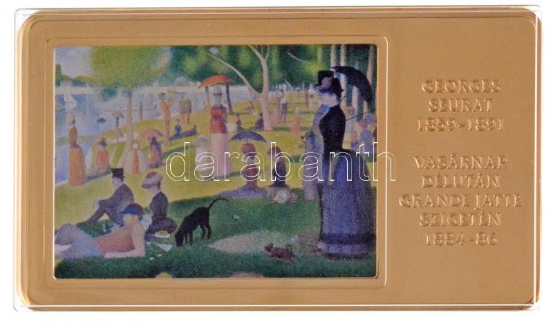 Description: DN "A világ leghíresebb festményei / Georges Seurat 1859-1891. - Vasárnap délután Grande Jatte szigetén 1884-86." aranyozott, multicolor Cu emlékérem (35x60mm) T:1- (eredetileg PP) karc, fo.