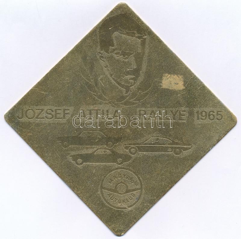 1965. "Magyar Autóklub JÓZSEF ATTILA RALLYE" lemezplakett (131x131mm) T:2-