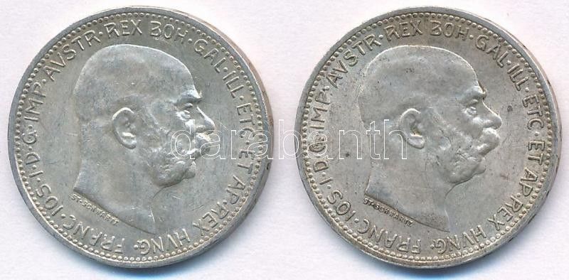 Ausztria 1915-1916. 1K Ag "Ferenc József" (2x) T:1-,2 Austria 1915-1916. 1 Corona Ag "Franz Joseph" (2x) C:AU,XF Krause KM#2820
