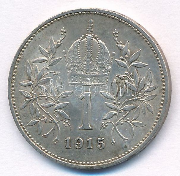 https://www.darabanth.com/en/372-Online-auction/372.0/Numismatics/Worldwide-silver-and-metal-coins~1500013/Ausztria-1915-1K-Ag-Ferenc-Jozsef-T1--Austria-1915-1-Corona-Ag-Franz-Joseph-CAU-Krause2328~II2166785