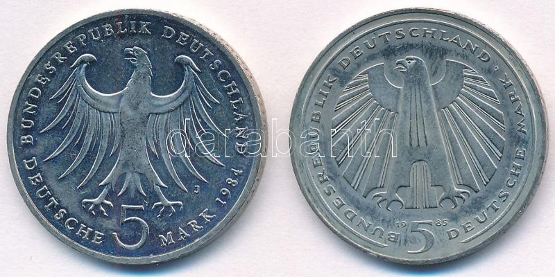 Description: NSZK 1984J 5M Cu-Ni "Mendelsshon-Bartholdy" + 1985G 5M Cu-Ni "150 éves a Német Vasút" T:1-,2