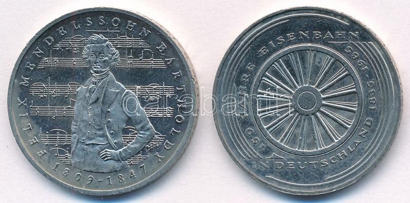 NSZK 1984J 5M Cu-Ni "Mendelsshon-Bartholdy" + 1985G 5M Cu-Ni "150 éves... https://www.darabanth.com/en/372-Online-auction/372.0/Numismatics/Worldwide-silver-and-metal-coins~1500013/NSZK-1984J-5M-Cu-Ni-Mendelsshon-Bartholdy-plus-1985G-5M-Cu-Ni-150-eves-a-Nemet-Vasut-T1-2--FR~II2173093