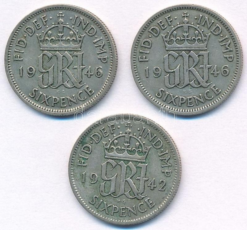 Nagy-Britannia 1942-1946. 6p Ag "VI. György" (3x) T:2,2- Great Britain 1942-1946. 6 Pence Ag "George VI" (3x) C:XF,VF