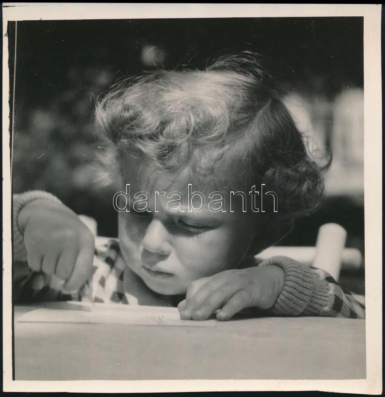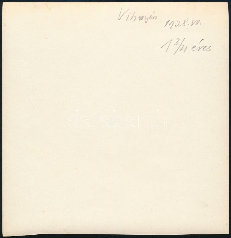 1928 Kinszki Imre (1901-1945) budapesti fotóművész hagyatékából, feliratozott, jelzés nélküli vintage fotó (Kinszki Gáborka Vihnyén), 13,2x13 cm