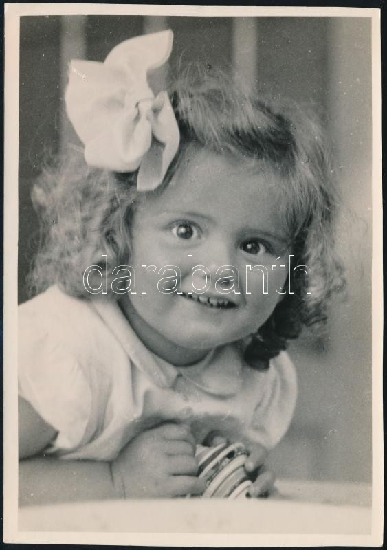 1936 Kinszki Imre (1901-1945) budapesti fotóművész hagyatékából, feliratozott, jelzés nélküli vintage fotó (Kinszki Juditka Verőcén), 17x11,8 cm