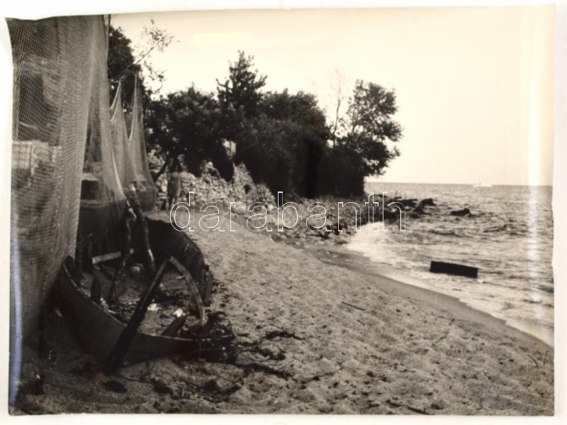 Marosi László (?-): Halászbárka, pecséttel jelzett fotó, kis szakadáss...