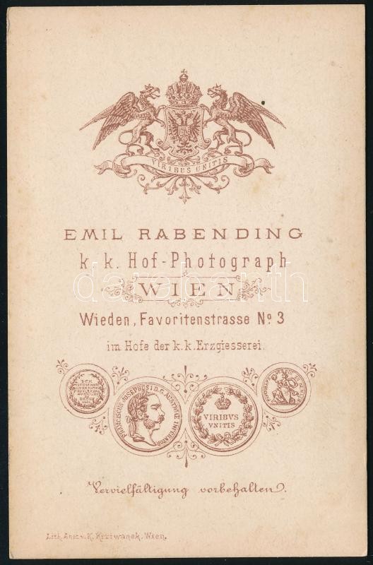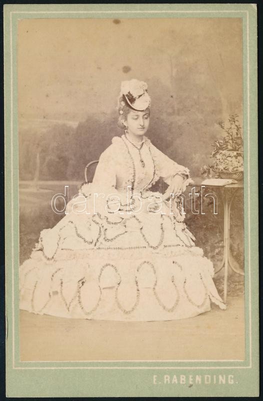 cca 1875 Hölgy műteremben, keményhátú fotó E. Rabending bécsi műterméb...