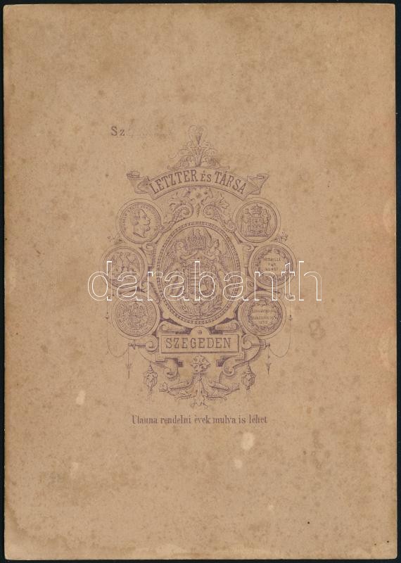 cca 1876 Szeged, Letzter és Társa fényképészeti műtermében készült, kabinetfotó méretű vintage fotó, 16x11,3 cm