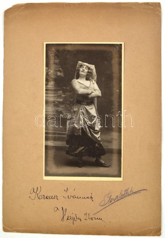 cca 1915 Hajdu Ilona (1889-?) szoprán opera-énekesnő dedikált fotója, Goszleth István műterméből, kartonra kasírozva, felületén törésnyom, 19,5×11,5 cm