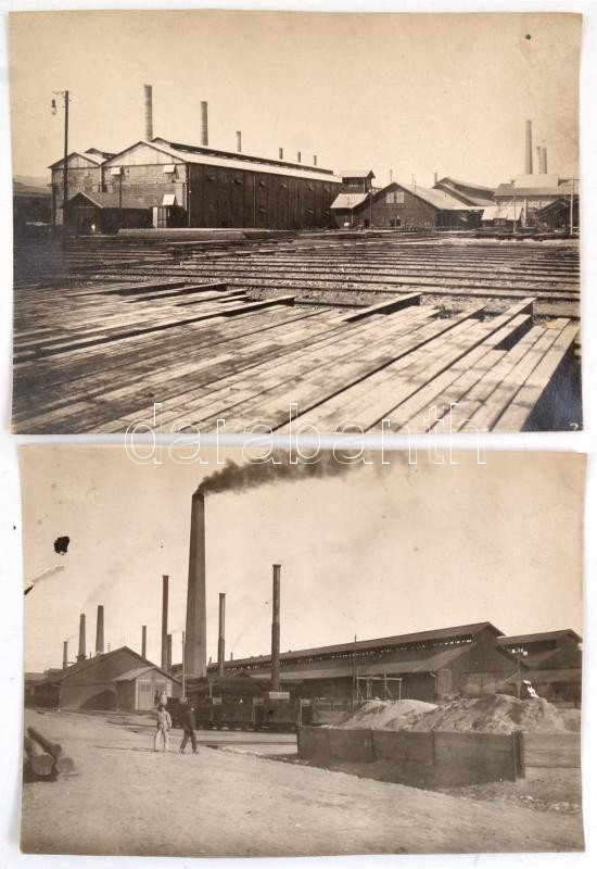 Description: cca 1920-30 össz. 2 db diósgyői gyárat ábrázoló, hátoldalán feliratozott fotó, külső felvételek munkásokkal, ipari vasúttal, üzemi épületekkel, 8x11 cm
