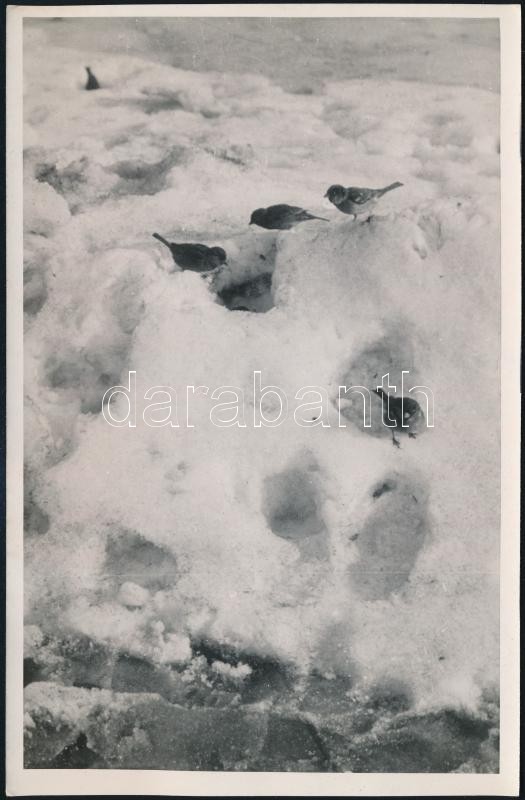 cca 1935 Kinszki Imre (1901-1945) budapesti fotóművész hagyatékából, pecséttel jelzett vintage fotó (Madarak a hótakarón), 18,1x12 cm