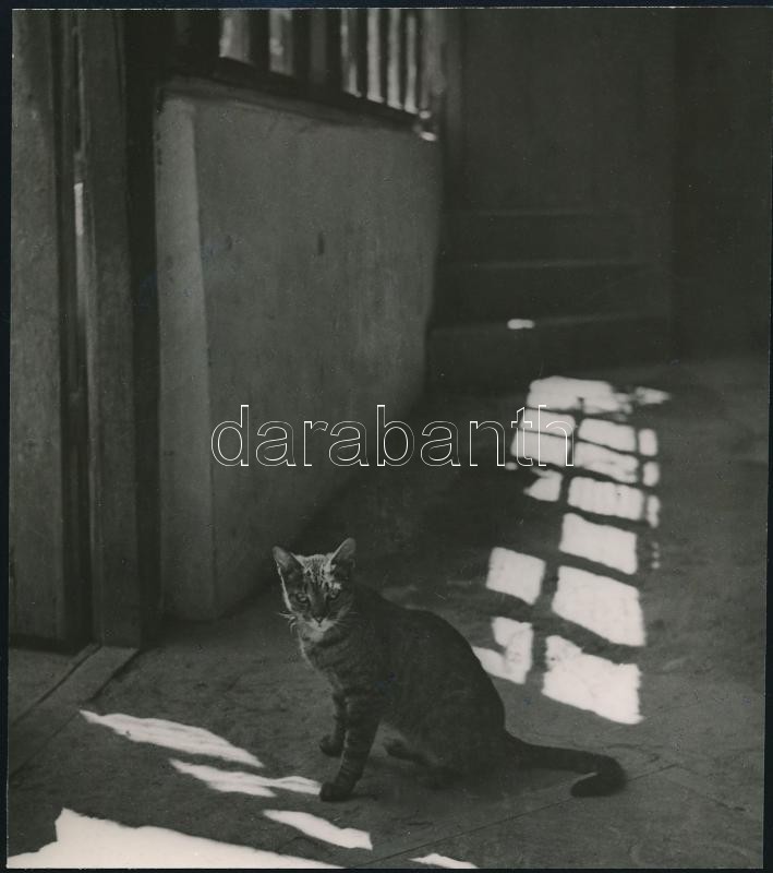 cca 1940 Osoha László (1899-1970) budapesti fotóművész hagyatékából, pecséttel jelzett, vintage fotóművészeti alkotás (házőrző cica), 18,4x16,2 cm