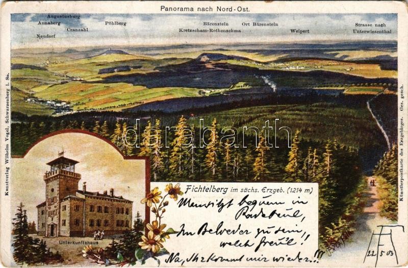 1903 Fichtelberg (Oberwiesenthal), Unterkunftshaus, Panorama nach Nord...