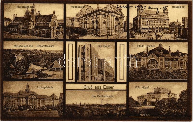 1932 Essen, Hauptbahnhof, Stadttheater, Handelshof, Städt. Saalbau, Die Börse, Margaretenhöhe, Gesamtansicht, Justizgebäude, Die Groß-Industrie, Villa Hügel / railway station, theatre, stock exchange, industry, villa, palace of justice