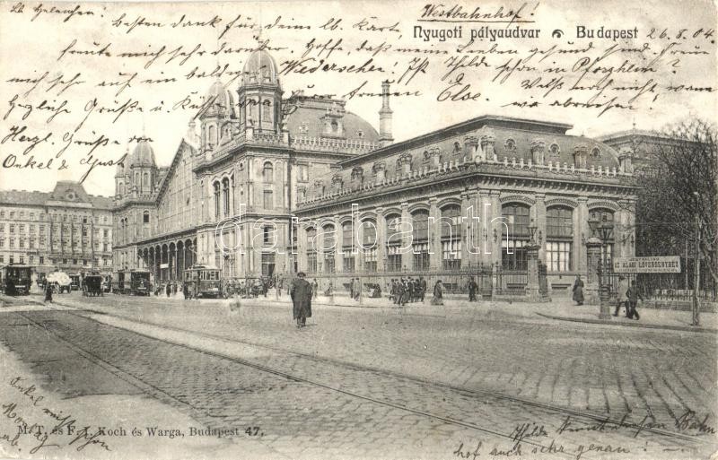 1904 Budapest VI. Nyugati pályaudvar, vasútállomás, villamos, jegyváltás az alagi lóversenyhez. M. T. és F. I. Koch és Warga (EK)