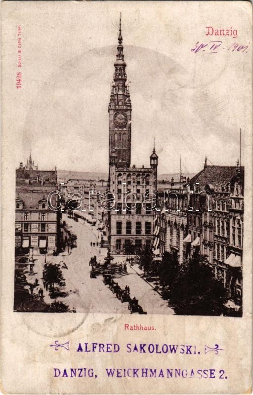 1901 Gdansk, Danzig; Rathaus / town hall, street view. Schaar & Dathe ...