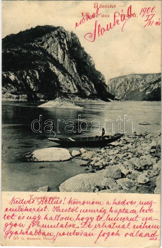 1900 Orsova, Kasanpartie / Cazane / Kazán-szoros, csónak. Hutterer G. 55. / gorge, boat (EK)