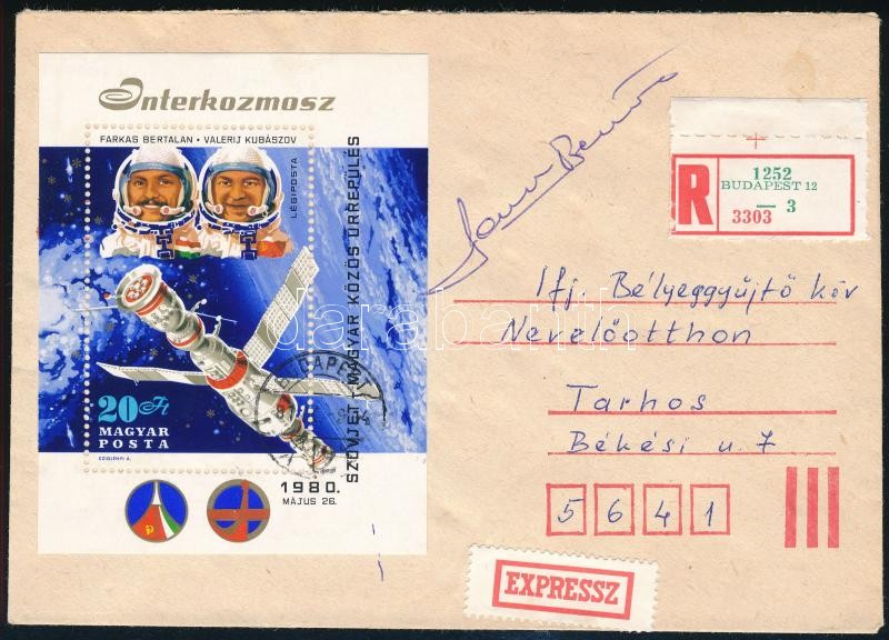 Farkas Bertalan magyar űrhajós aláírása Interkozmosz blokkal ellátott ...