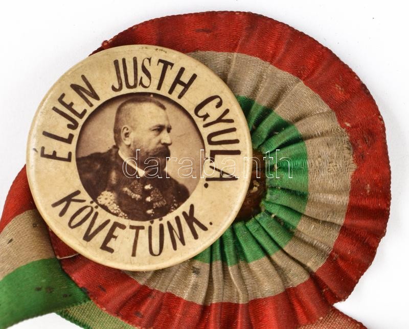 https://www.darabanth.com/en/373-Online-auction/373.0/Art-and-other-collectibles/Historical-documents-manuscripts~500019/cca-1900-Justh-Gyula-valasztasi-jelveny-nemzeti-szinu-szalagon-kopottas-allapotban-h-19-5-~II2178319