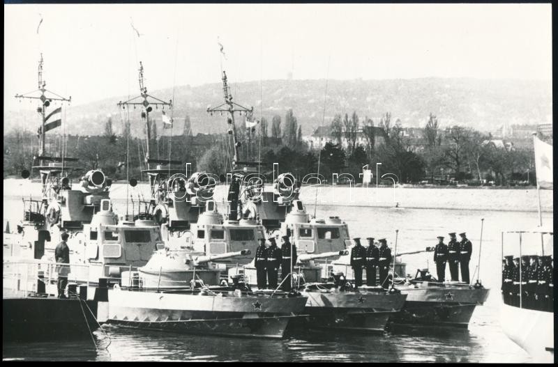 cca 1980 A szovjet dunai flottilla naszádjai budapesti látogatáson, fotó, hátulján felirat,15,5x23,5 cm
