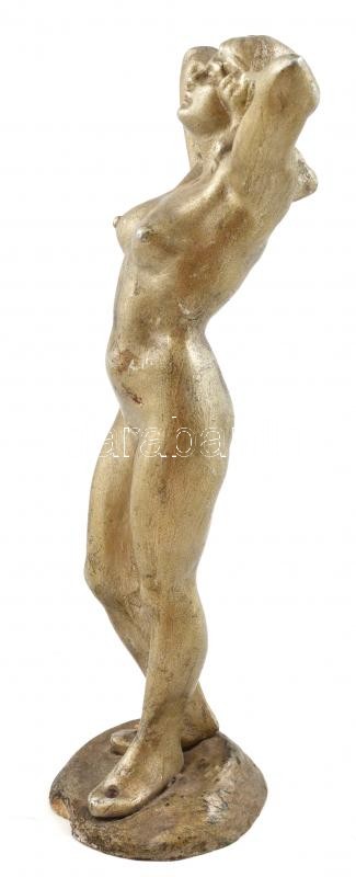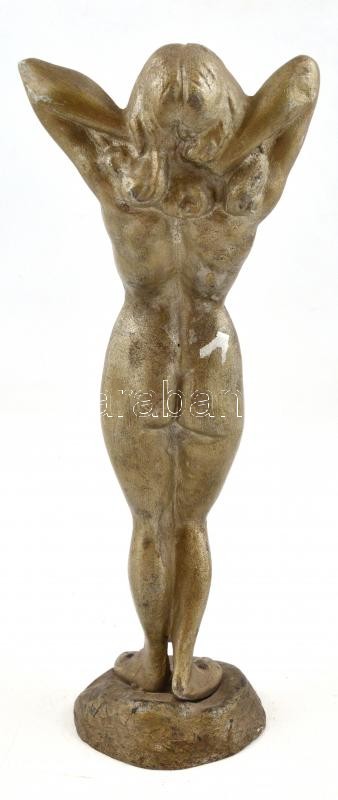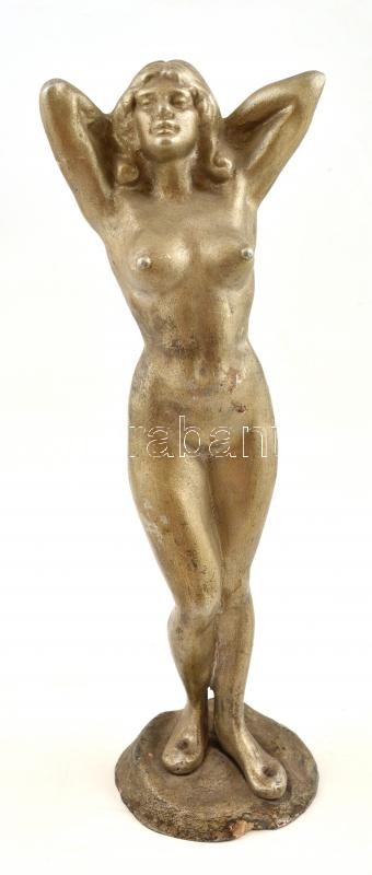 Jelzés nélkül: Női akt szobor. Fém 36 cm