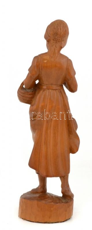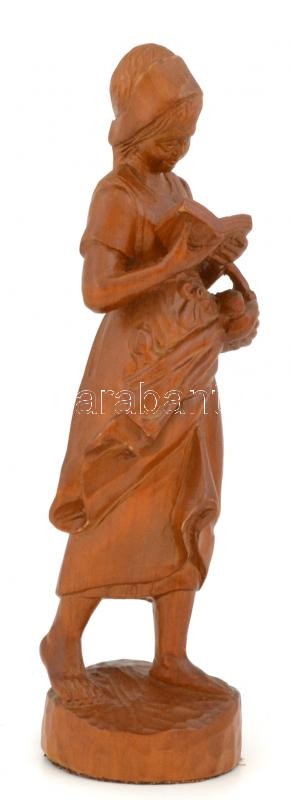 Olvasgató lány, faragott fa szobor, jelzés nélkül, hátoldalon kis hibával, m: 30,5 cm