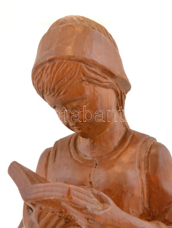Olvasgató lány, faragott fa szobor, jelzés nélkül, hátoldalon kis hibá...