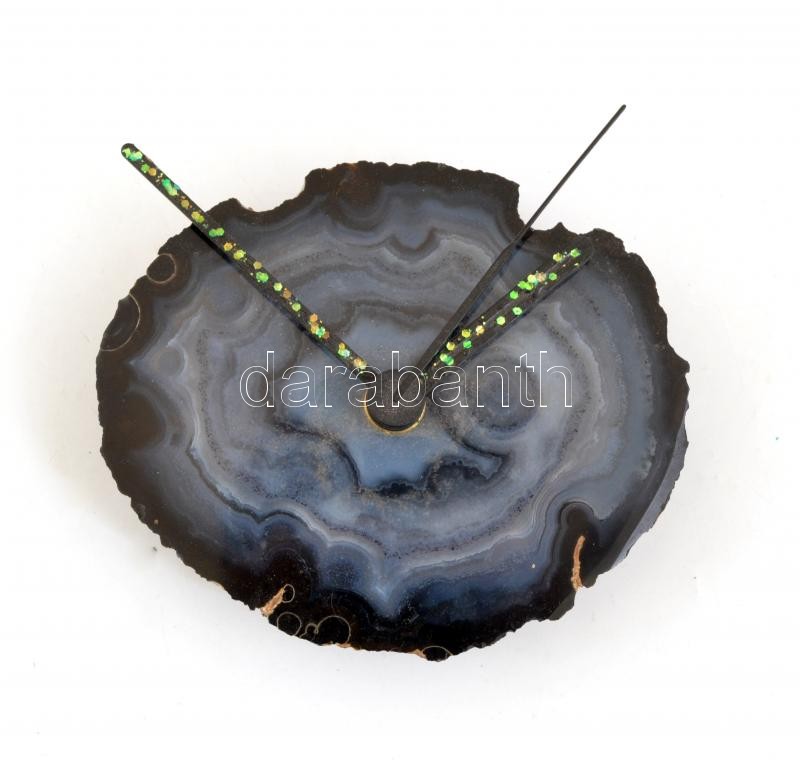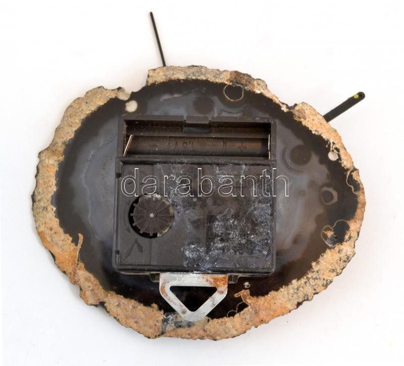Achát alapra szerelt óra, elemmel működik, sérült, 10×12 cm