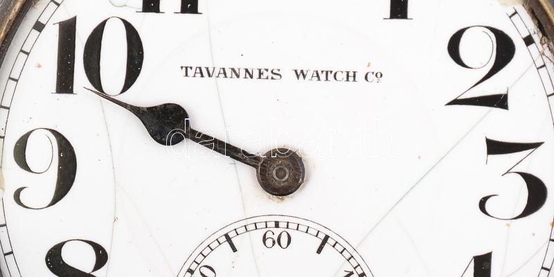 Tavannes fém zsebóra, porcelán számlappal, másodpercmutatóval (számlap sérült, üveg nélküljavításra szorul) /