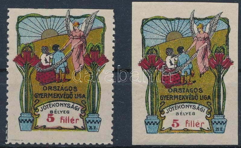 1910 Országos Gyermekvédő liga fogazott és vágott 5f jótékonysági bélyege