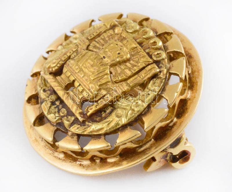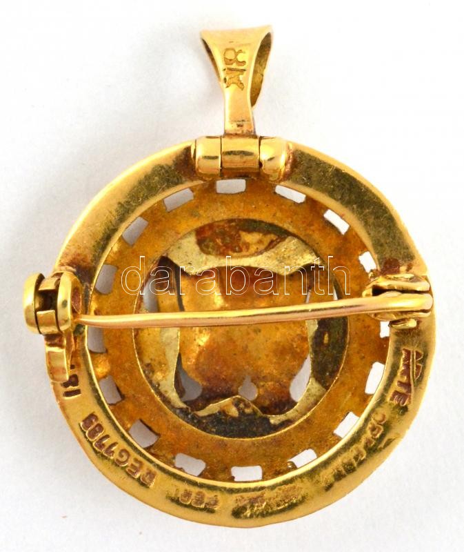 Arany (Au) 18K medál és bross egyben, jelzett, d: 2,5 cm, nettó: 7,6 g