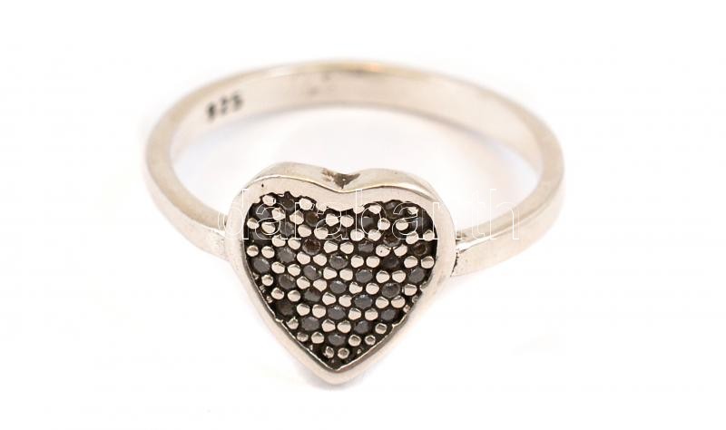Ezüst(Ag) szívecskés gyűrű, jelzett, méret: 54, bruttó: 1,96 g