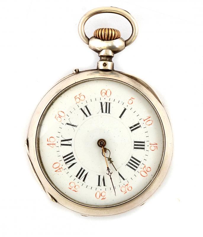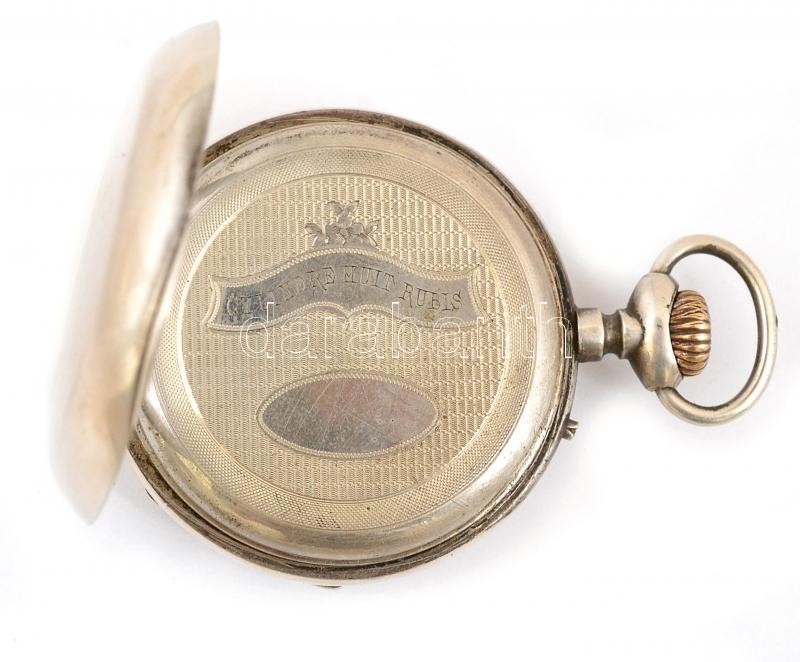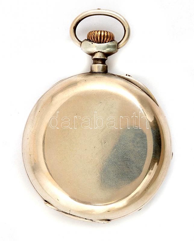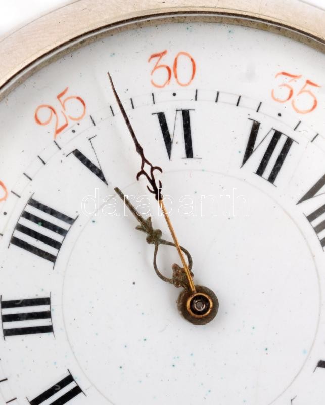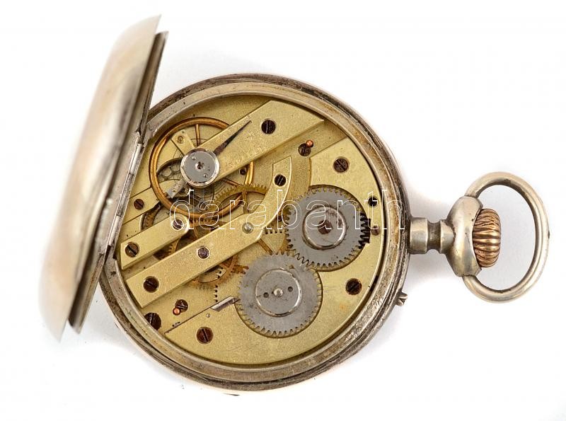 Ezüst(Ag) zsebóra, jelzett, egyik mutatója cserélt, nem jár, d: 5 cm, bruttó: 96,2 g