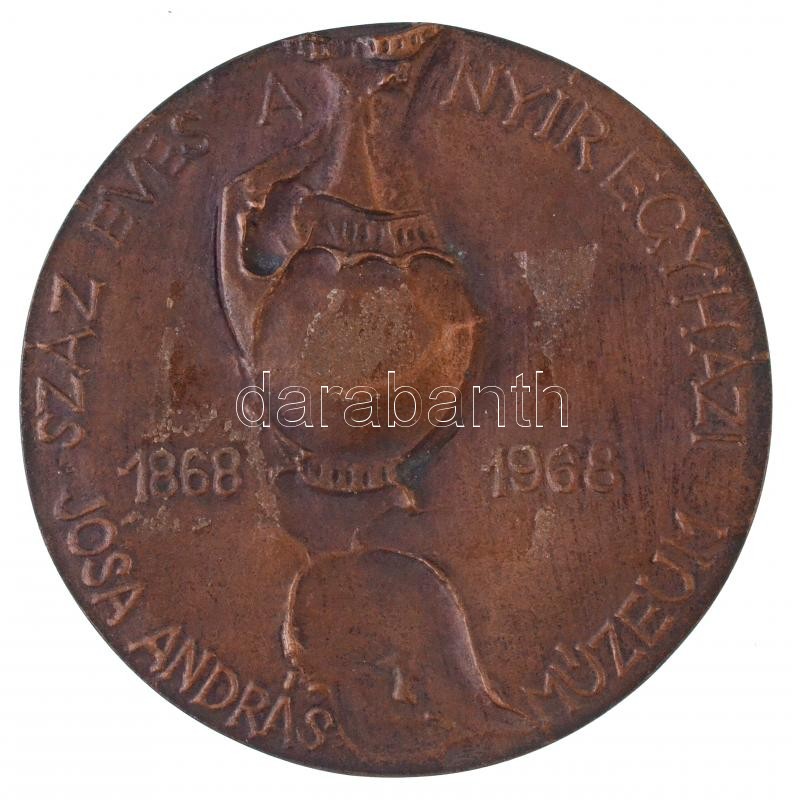 Description: Ligeti Erika (1934-2004) 1968. "Múzeumalapító - Dr. Jósa András 1834-1918 / Száz éves a nyíregyházi Jósa András Múzeum 1868-1968" kétoldalas, öntött Br plakett (88mm) T:1-